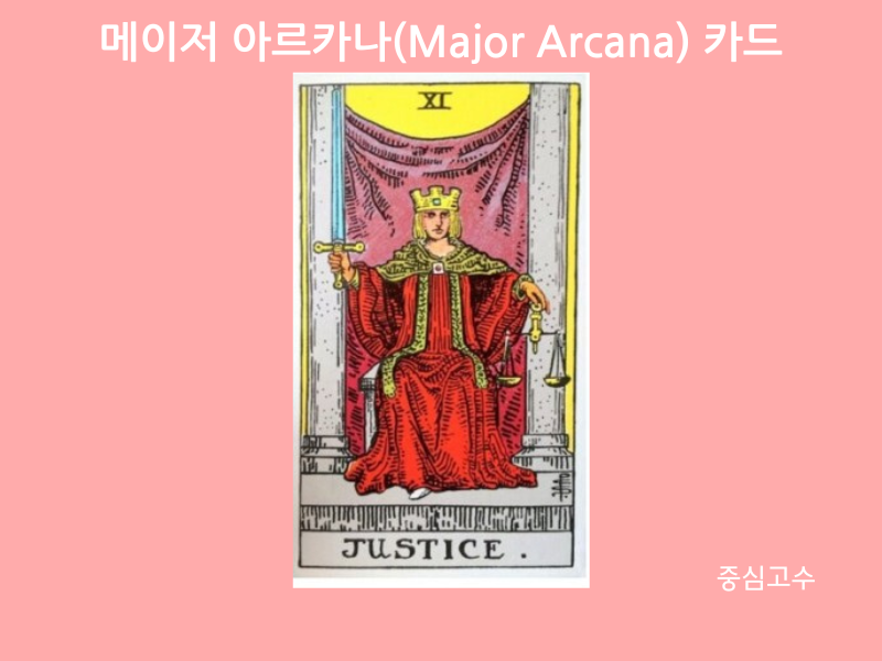"A tarot card of 'Justice' sitting on a throne, holding a sword and scales, symbolizing truth, balance, and fairness."